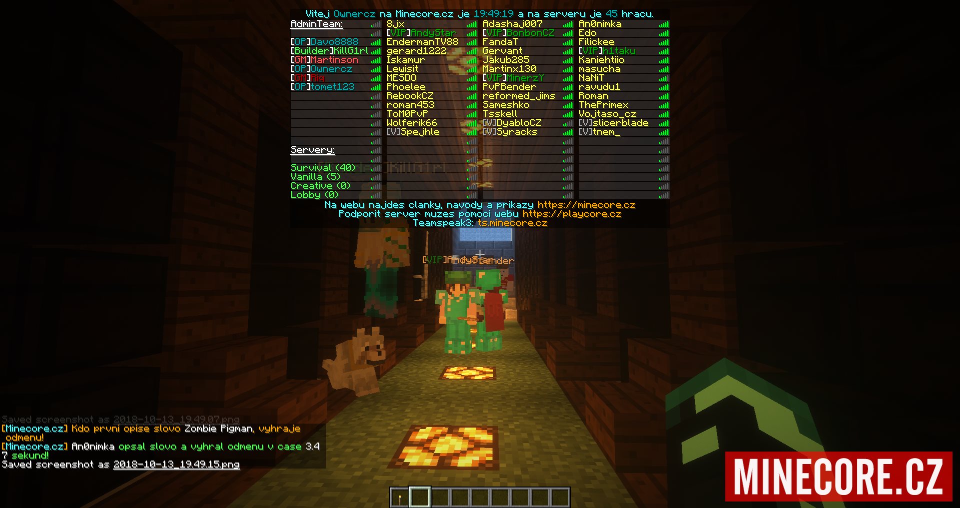 | Originalita | Ownercz | Tomet | Riq | Martinson | AndyStar | Killka | Davo8888 | PvPBender |