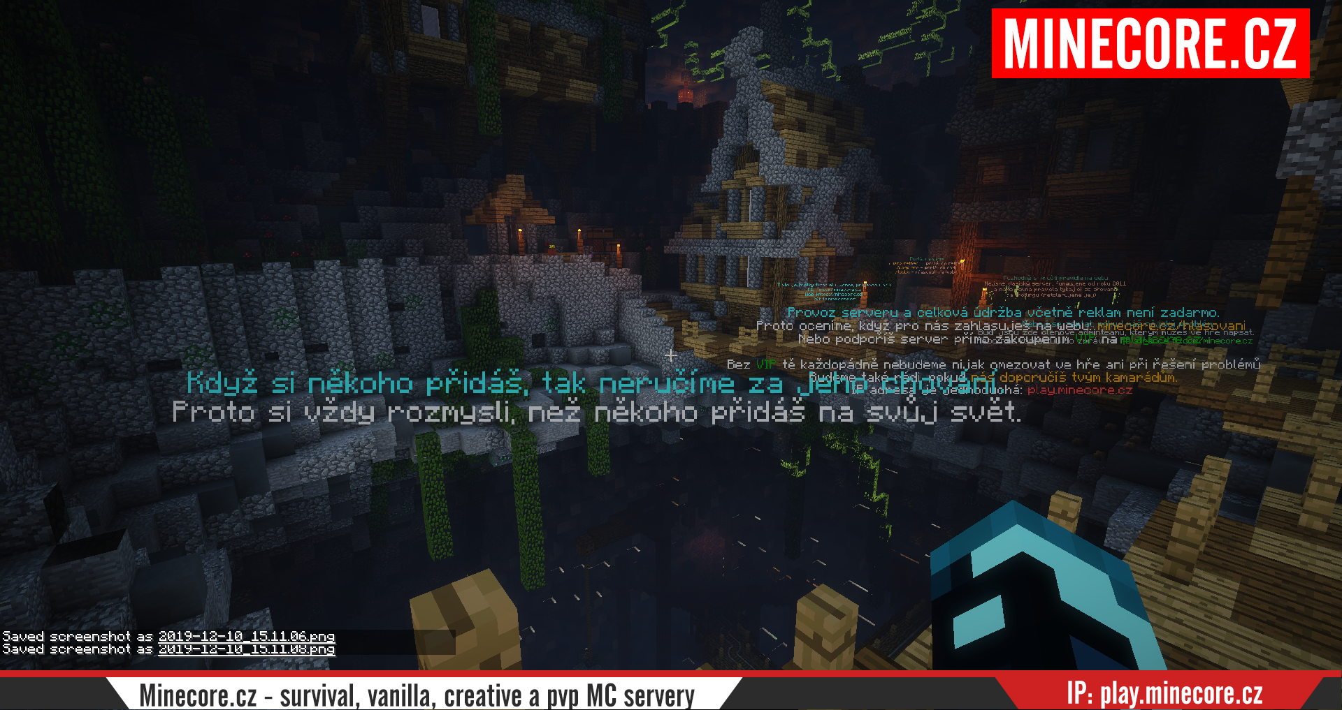 | Pure Vanilla 14 | vanilla | 1.14.4 | Vlastní vanilla světy, sdílený nether a end. Možnost přidání kamarádů dle libosti. |